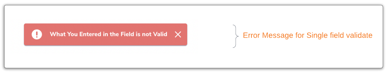 "isValid"is the Validation response with false as the result. The FenX UI will use this value to highlight the text field and present your custom validation message."message"is the custom message displayed on the UI if the user has entered invalid data.