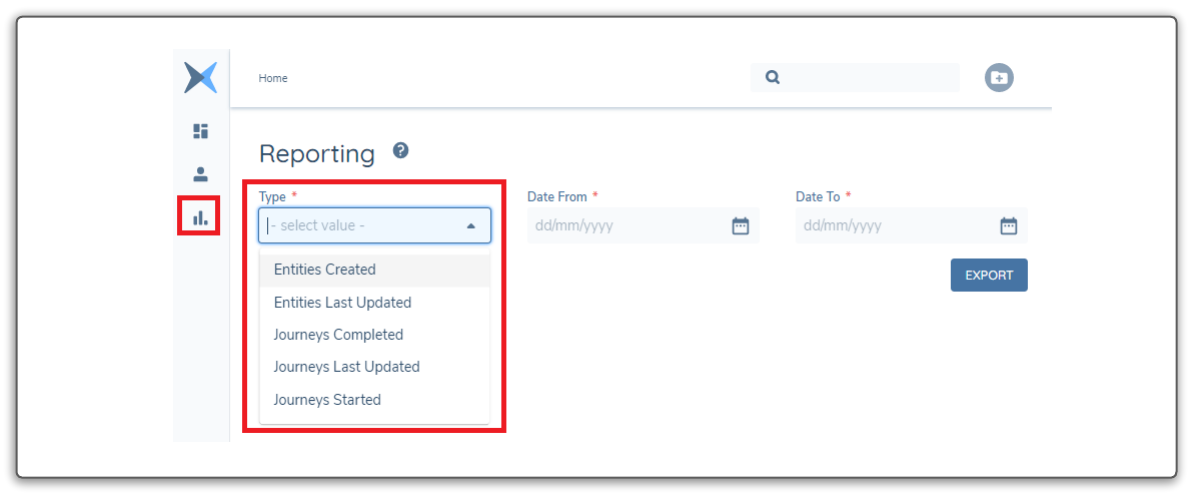 The CSVs contain the same data just in a CSV file. The JSON data points for each report are as listed below. There are only a small number of data points per result item. The intention behind the functionality of these reports is that they contain important data points that can then be filtered and the full data records for the Entity Record or the Journey Instance then separately retrieved via the Entity and Journey APIs.