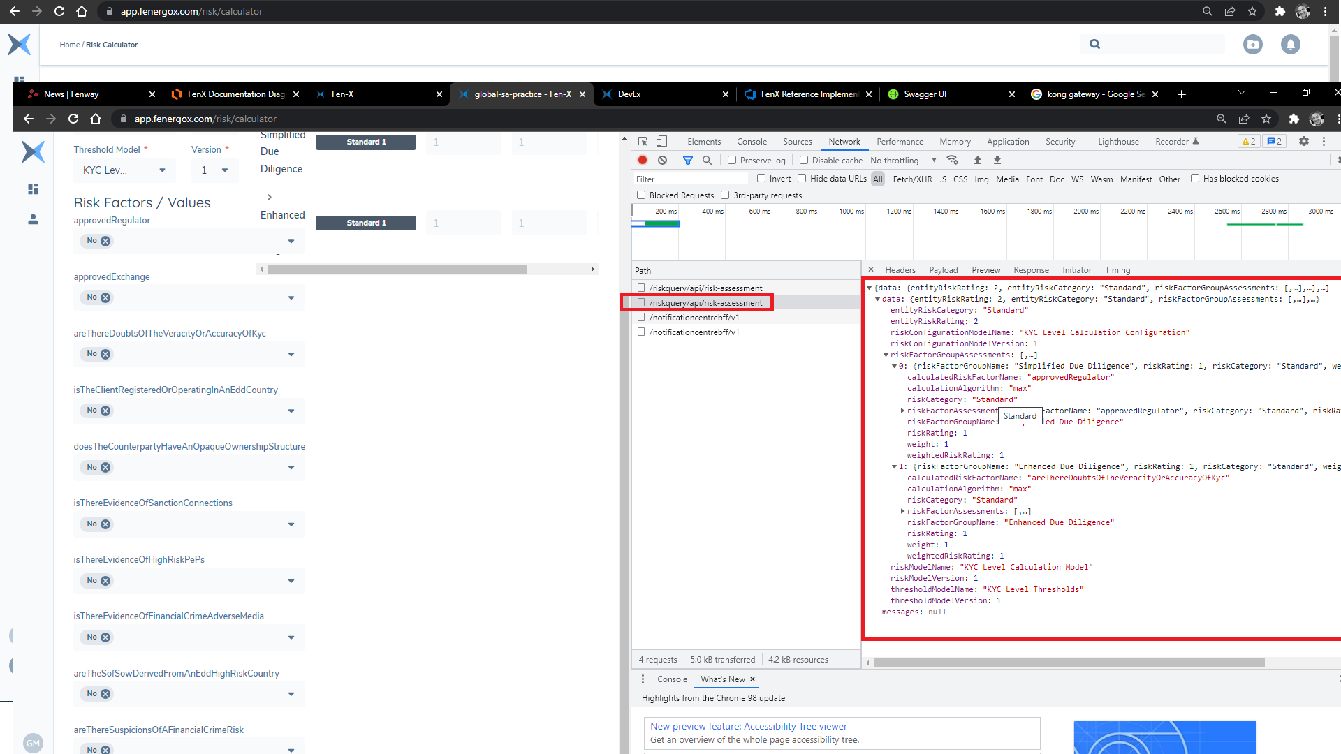 As a developer this screen can be used to inspect the API calls using the developer tools to get samples of the Risk Calculation API calls