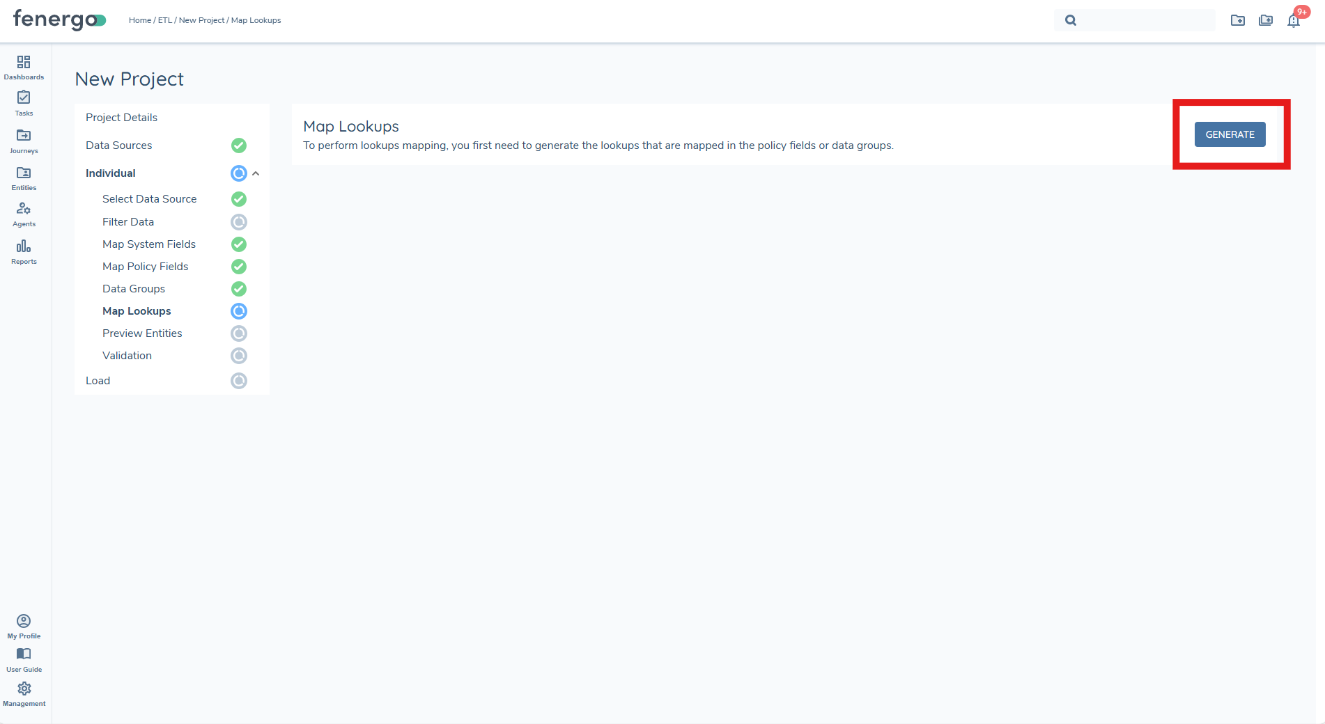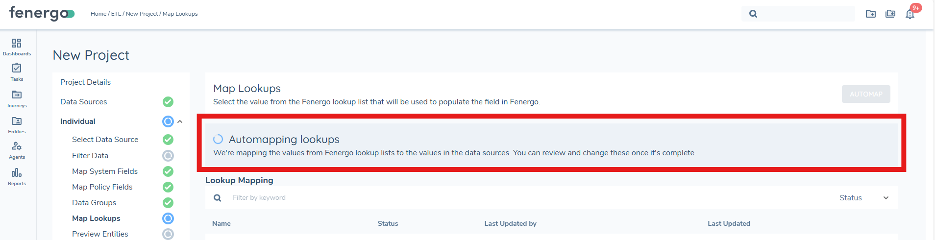 Before users can begin mapping values, they must first generate the lookup lists. This action scans the project configuration and datasource to determine all lookup-driven fields and prepares the mapping table.