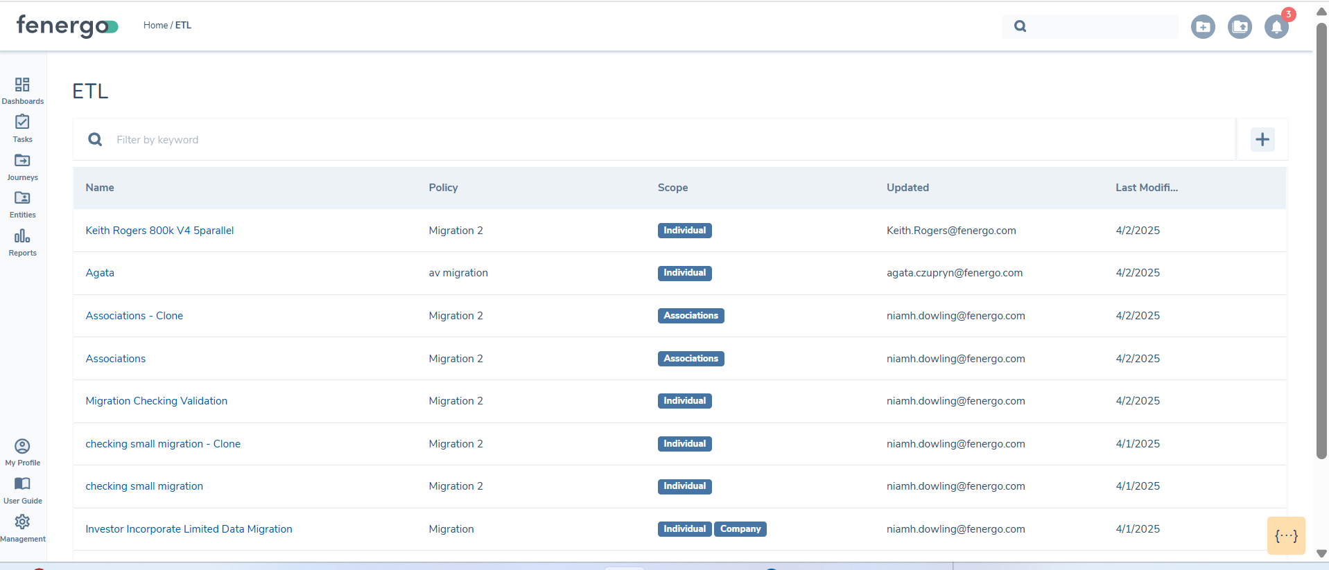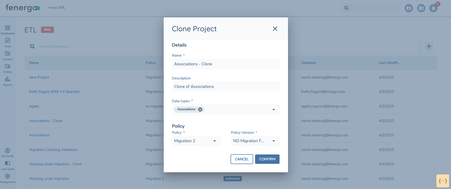 Similarly, ETL projects can also be imported from one tenant to another. However, a key consideration is that the associated policy must be imported separately and prior to the ETL project.