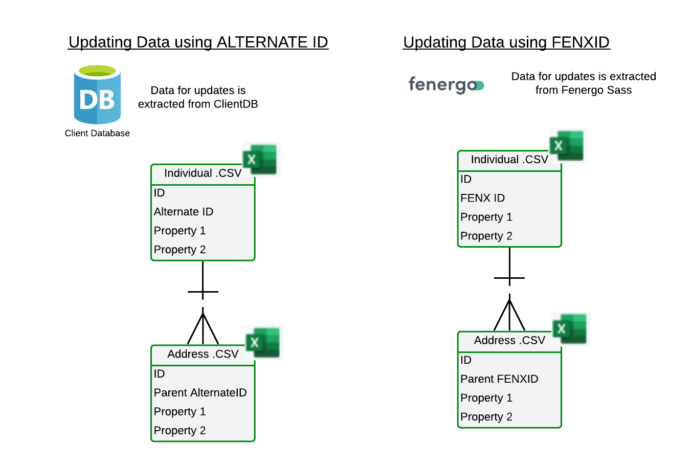 System fields are essential for migration and are required to transfer data into FenX. Each migration must use either the ALTERNATEID or the FENXID as the unique reference. Entities are created using the ALTERNATEID, which serves as the foreign key from the source system. Records can be updated using either the FENXID or the ALTERNATEID, but only one unique reference can be used for each data transfer. A migration cannot include both ALTERNATEID and FENXID simultaneously. Controls exist on the UI to only allow one of these fields to be mapped.