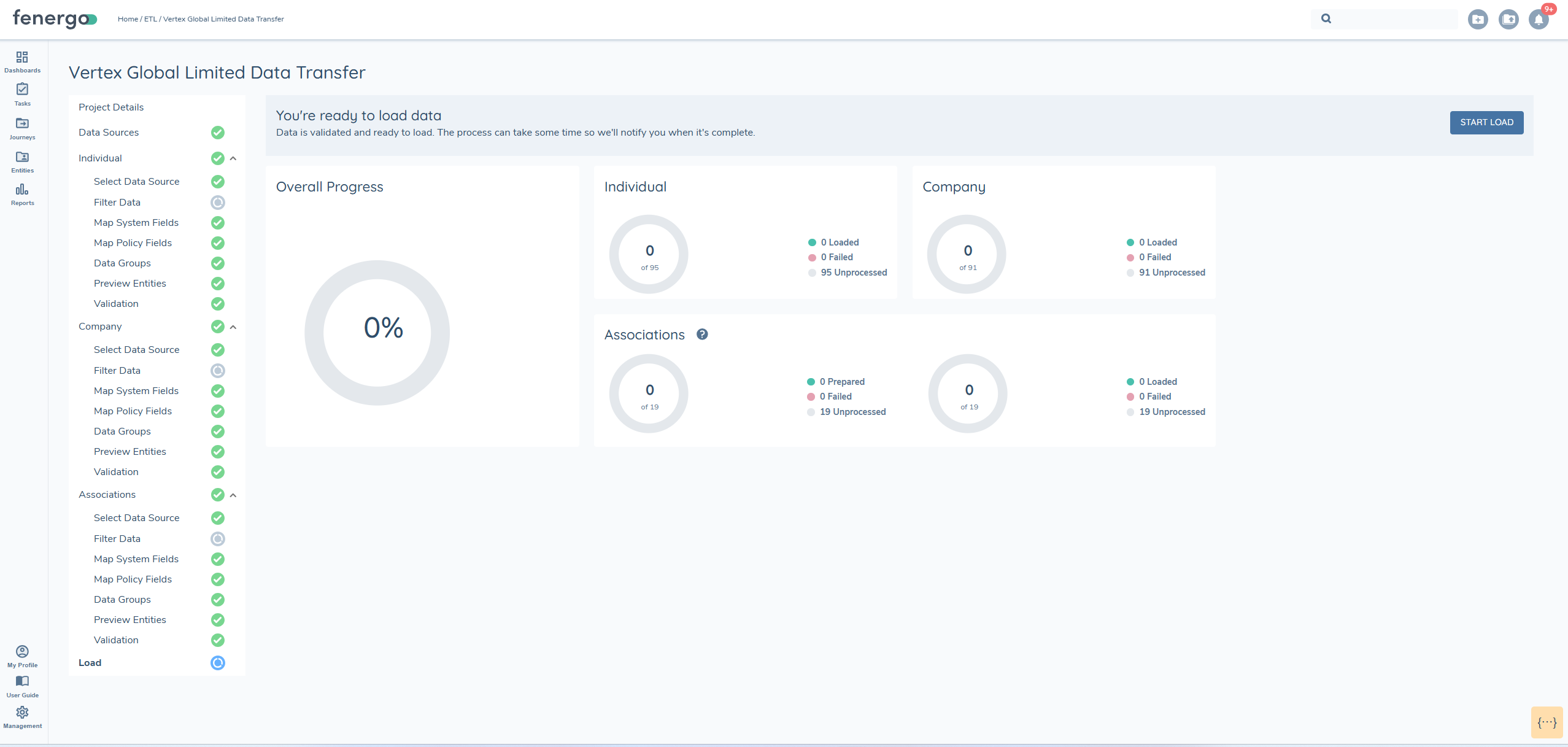 Once all validation issues are resolved and every entity in the migration project has been successfully validated, the LOAD option becomes available.