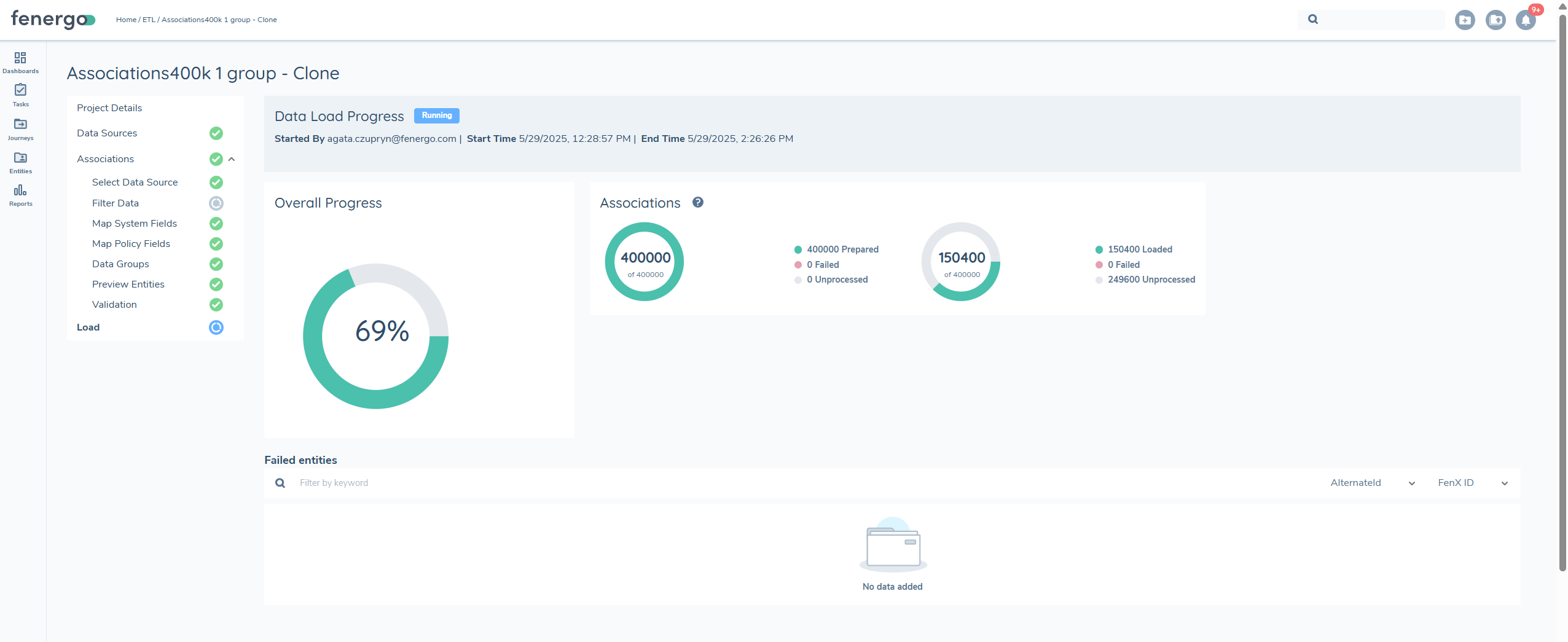 After the load process is complete, the migration becomes final and cannot be modified, even if failures occur. To address any failed entities, a new migration project must be created. Load failures are rare and generally occur only due to system or network issues.