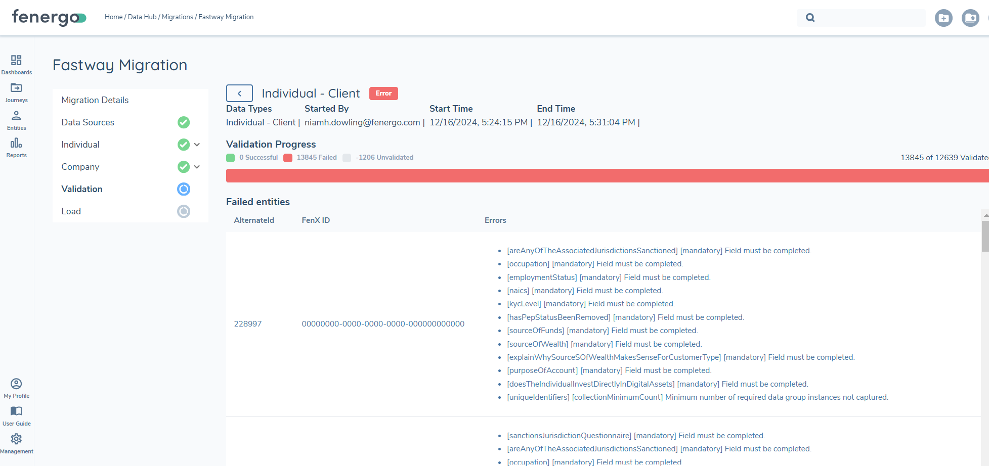 - FENXID - ID of the entity which has the validation issue