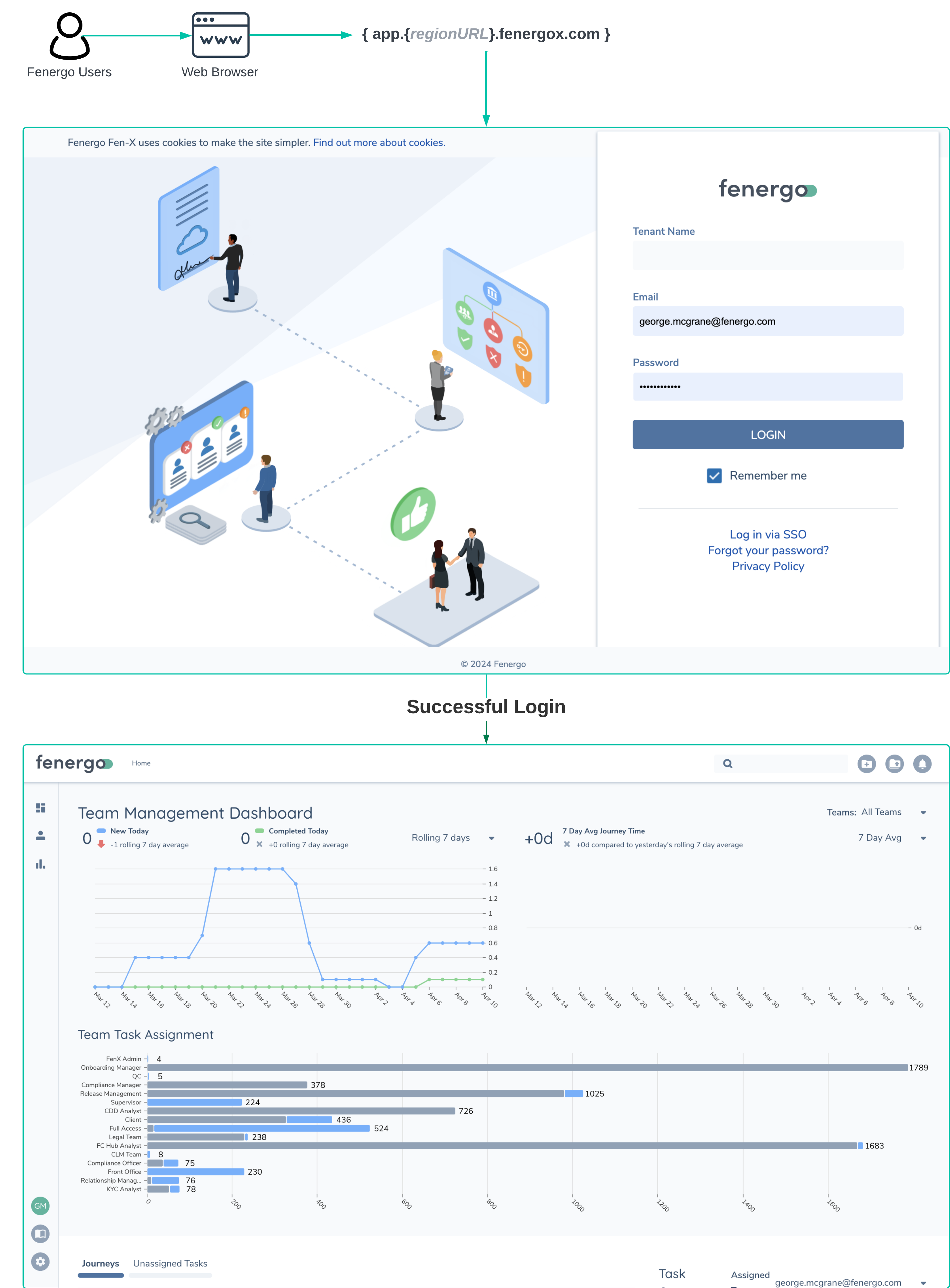 The Fenergo SaaS Platform is a cloud-based service. This means you don't need to install any software or manage any hardware. Fenergo provides the platform as a Managed Service. In other words, we take care of all the deployment and hosting. All you need to access your platform instance is a web browser.